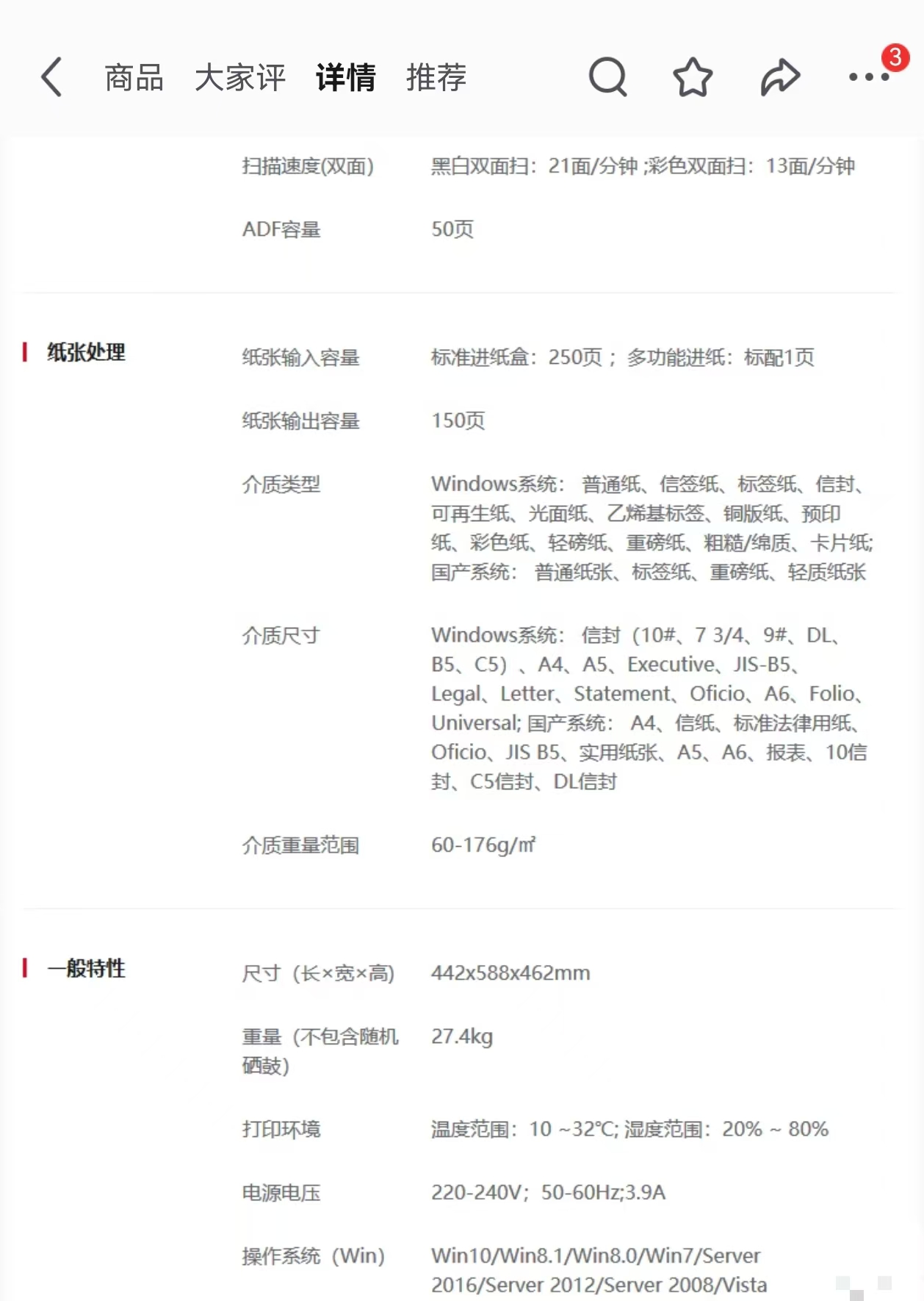 黑白打印速度(頁/分鐘 ppm)  :   30