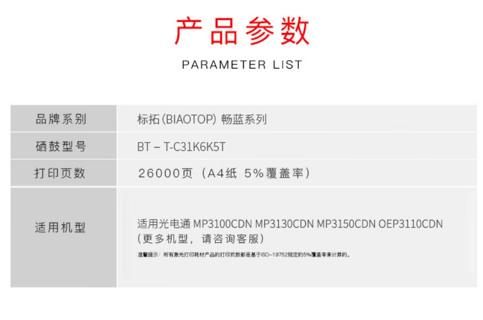 適用機型  :   適用光電通OEP3110/3112/3115CDN、MP3100/3104/3105CDN打印機